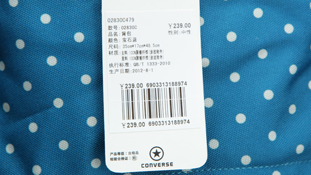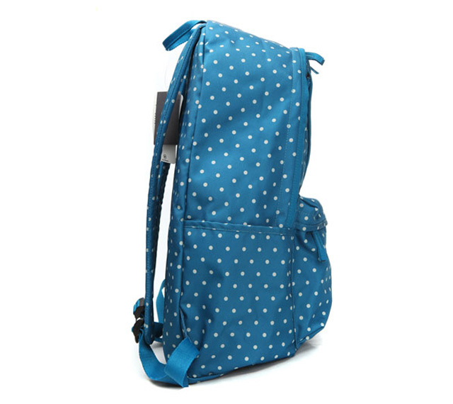 匡威02830C479-2013年匡威新款02830C479?印花款Chuck Taylor 背包,在基礎(chǔ)款簡(jiǎn)潔實(shí)用的包型上,以藍(lán)色為底,采用了正風(fēng)靡的白色波爾卡圓點(diǎn)印花圖,時(shí)尚又實(shí)用。聚酯纖維,寶石藍(lán),容量30L。