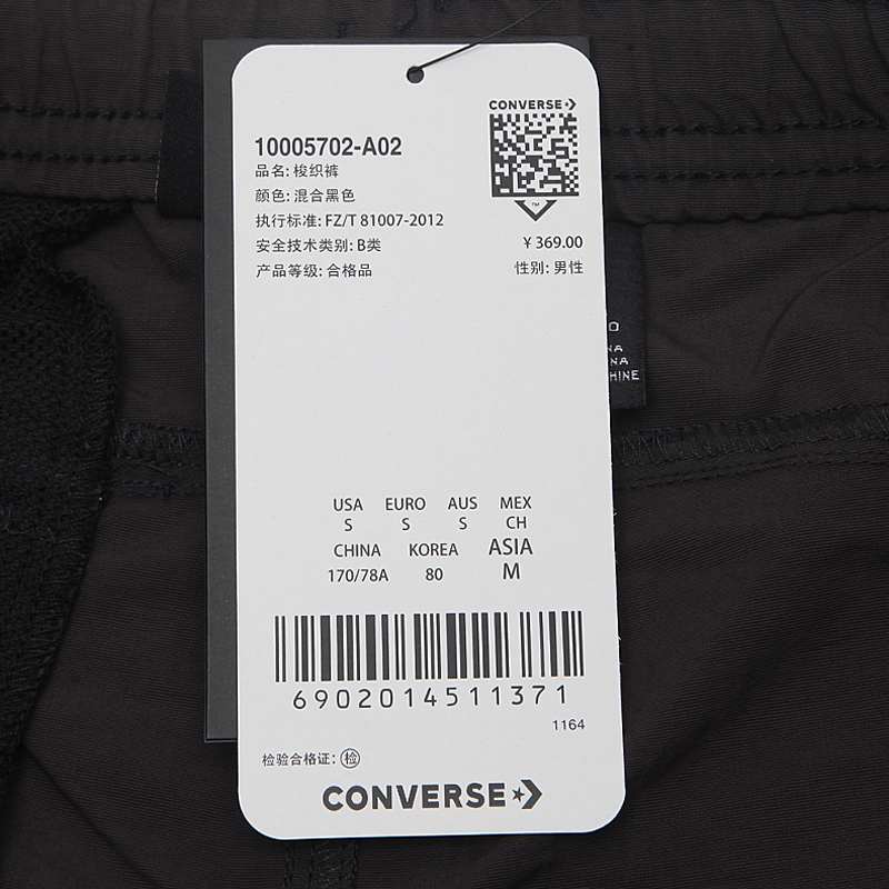 匡威10005702-A02-CONVERSE(匡威)梭織短褲服裝系列黑色10005702-A02