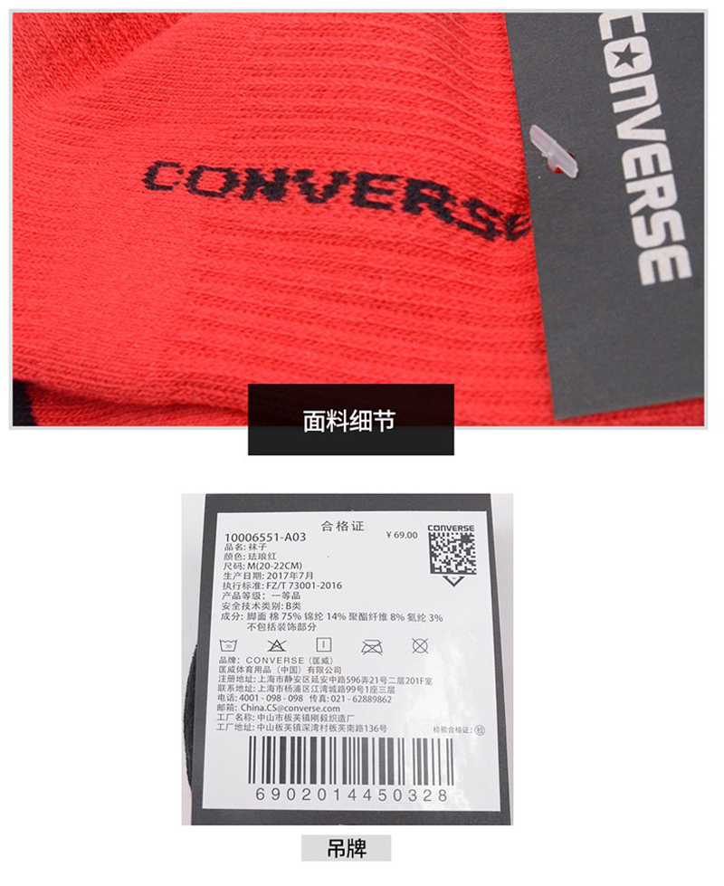 匡威10006551-A03-CONVERSE(匡威)襪子配件系列搪瓷紅10006551-A03