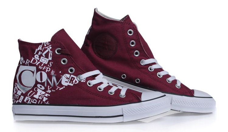 匡威All Star梅紅色高幫綁帶帆布中性鞋