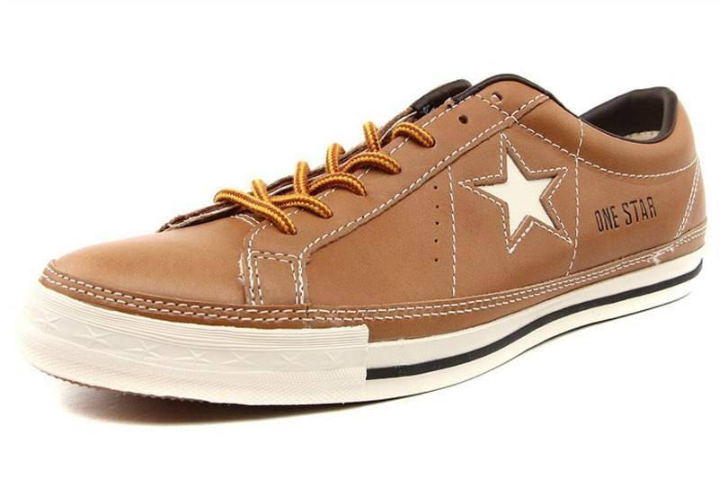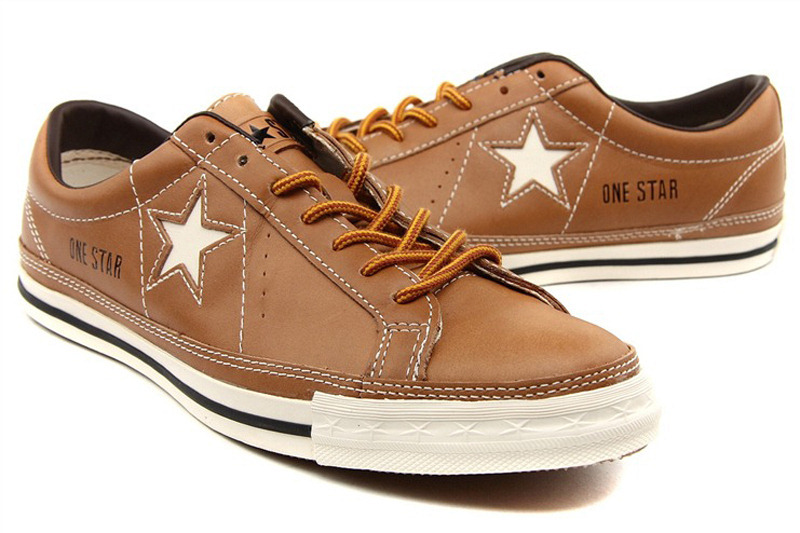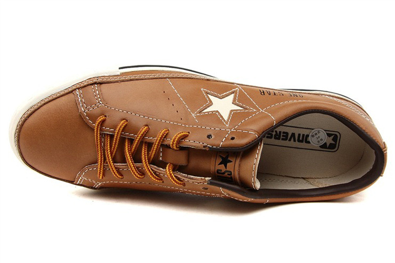 匡威One Star黃棕色/奶白色低幫綁帶牛皮中性鞋