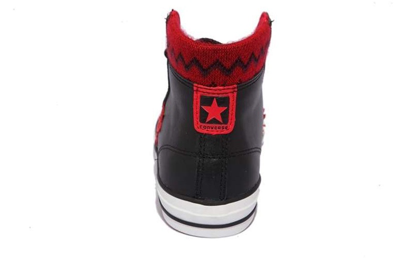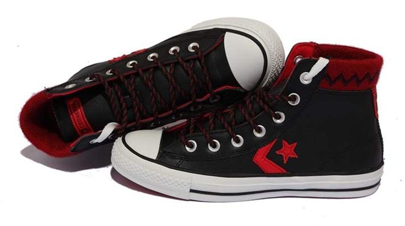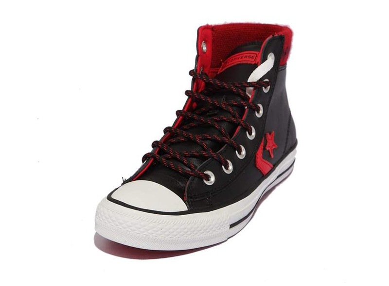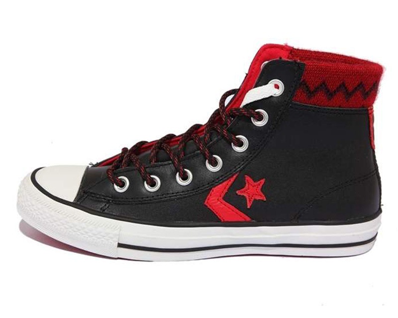 匡威STAR PLAYER黑/校園紅色高幫綁帶牛皮中性鞋