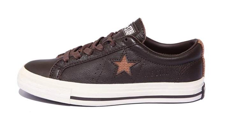 匡威One Star巧克力色/深棕色/奶白色低幫綁帶牛皮中性鞋