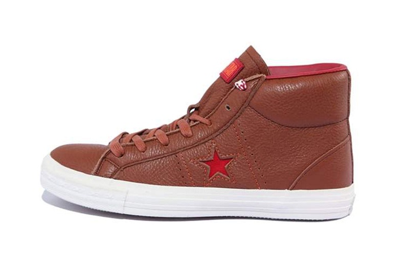 匡威One Star棕色/紅高幫綁帶牛皮中性鞋