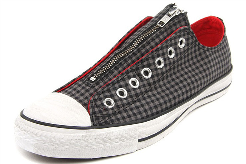 匡威129243_408-converse 帆布鞋的 獨特設(shè)計 鞋舌上的可開拉鏈絕對是本款的特色,SLIP的鞋款一直是春夏季的寵兒,這次在鞋舌上的巧妙設(shè)計更具年輕趣味性,紅黑色系的格紋更是經(jīng)典,COOL到極致!