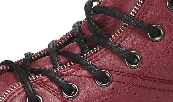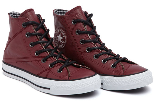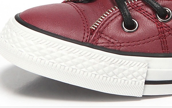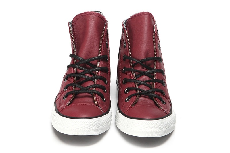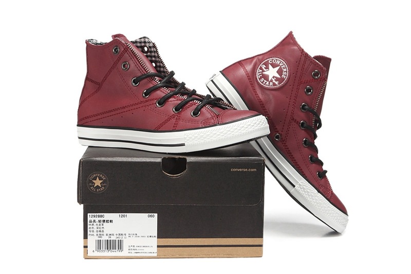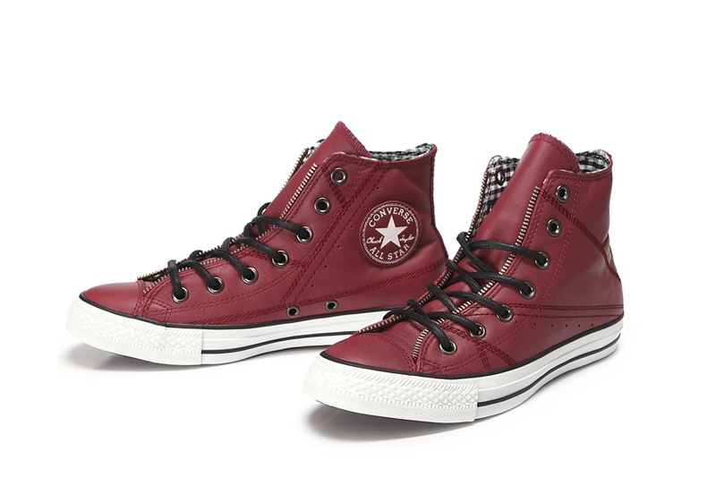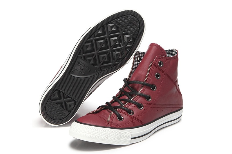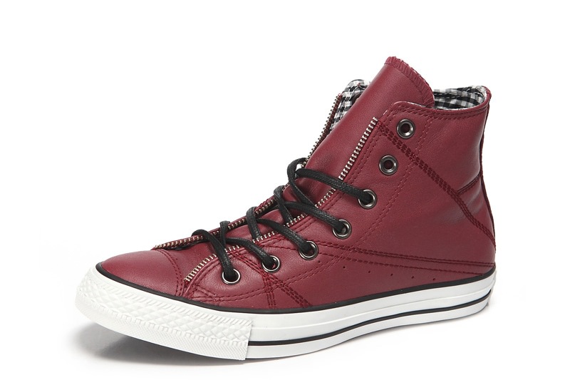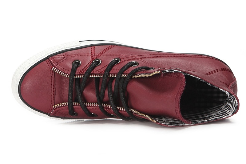 匡威129288-dg-優質牛皮,在陽光下閃爍光亮,鞋眼邊緣處有ZIPPER BINDING,金屬質感的鞋眼,以及紅黑色小格紋內襯都表現了搖滾不羈的風格