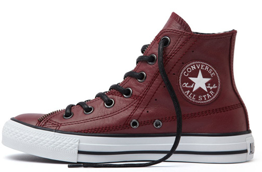 匡威All Star深紅色高幫綁帶牛皮中性鞋