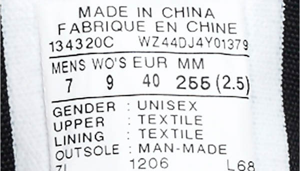 尺碼:(括號內(nèi)為對應中國碼)