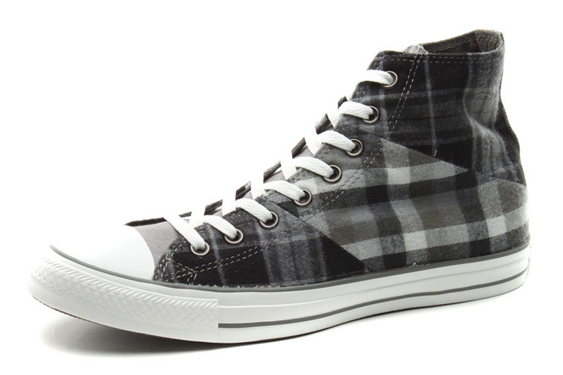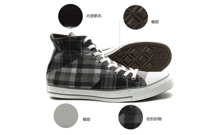 匡威136150-2013年新款136150不同格紋的拼接,延續了經典的品味,配以條紋元素和多重冷色系撞色,是最時尚的英倫搖滾質感,絕對是春季的必備品之一。紡織織物/帆布,炭灰色/黑/法藤灰色/云灰色