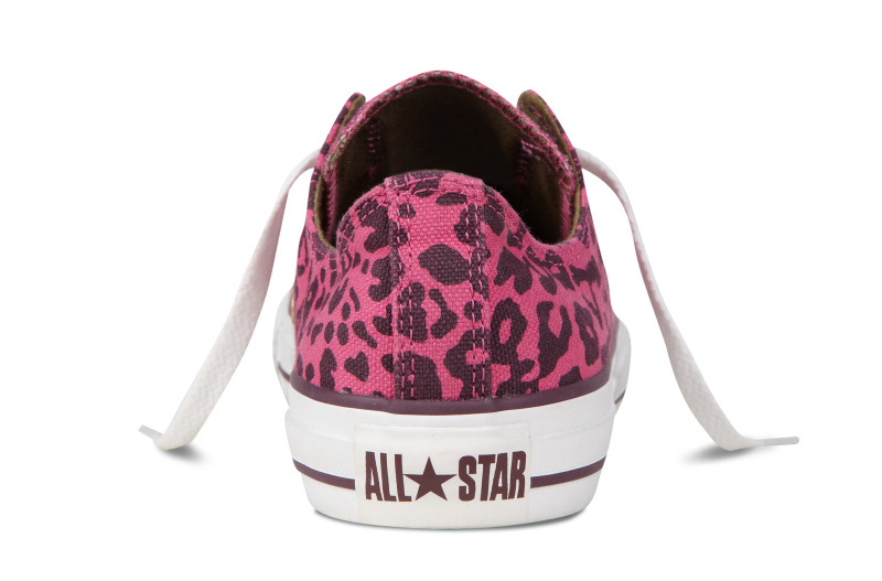 匡威136180-2013年新款136180大面積的豹紋圖案充滿著波普感覺,和經典鞋款搭配,加上濃烈的玫紅色和紫色搭配,野性十足而不失時尚風潮。帆布,玫紅色/紫