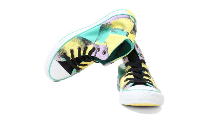 匡威136234-色彩豐富的不規(guī)則圖案拼接在一起,讓人仿佛踩在彩虹上漫步。