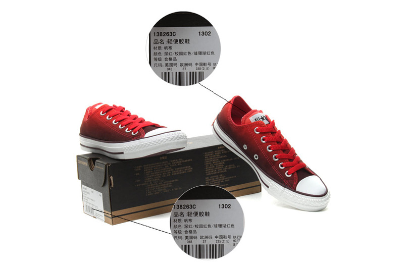 匡威CHUCKTAYLOR紅低幫綁帶帆布中性鞋