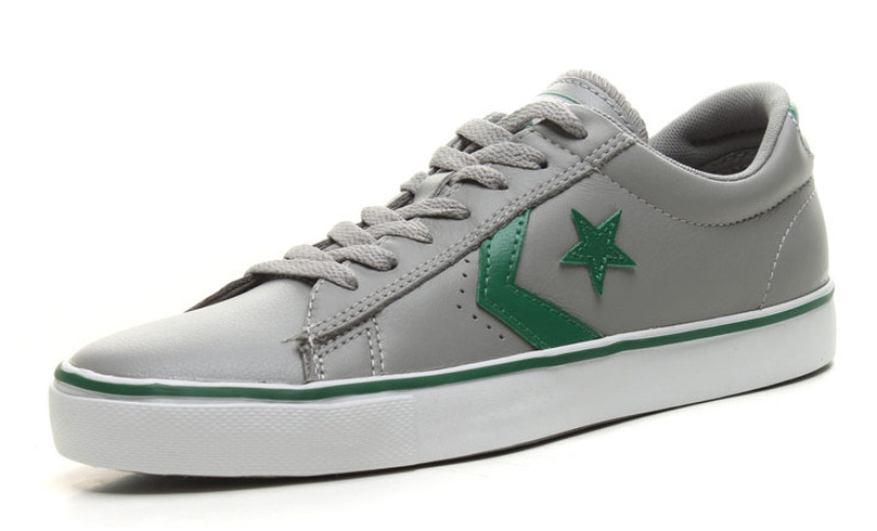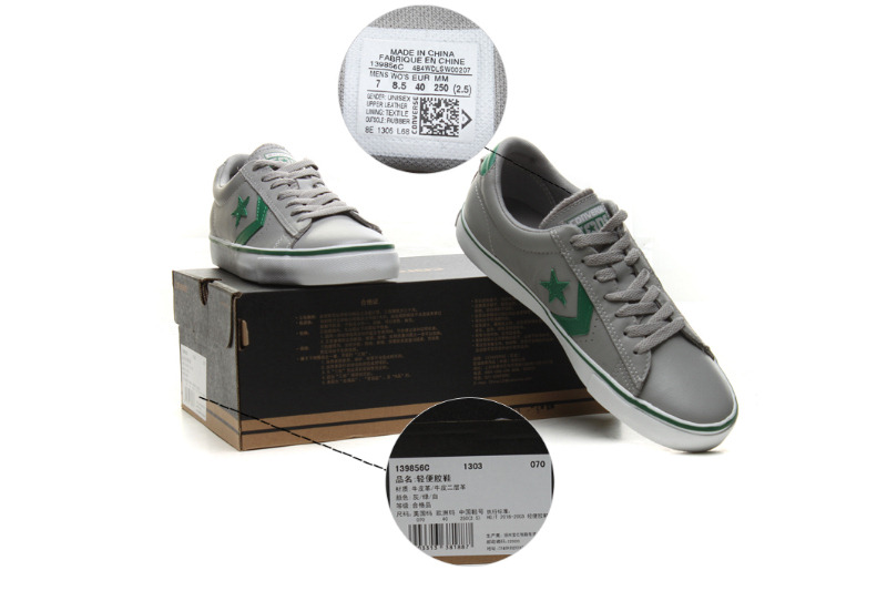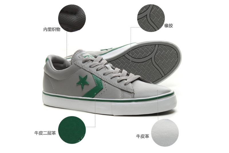 匡威輕便膠鞋灰/綠/白低幫綁帶牛皮中性鞋