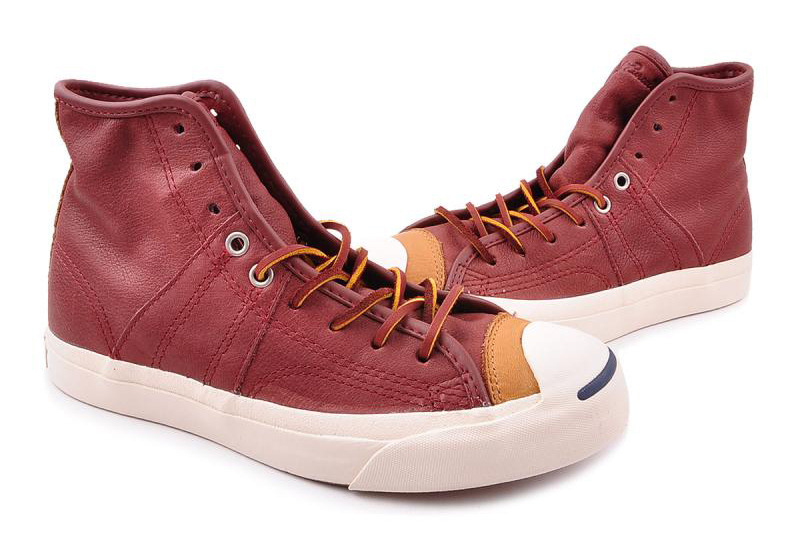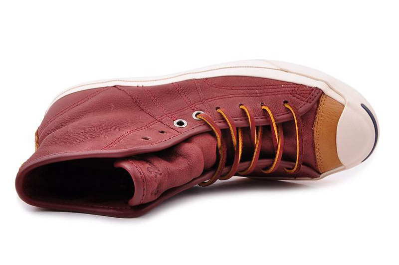匡威Jack purcell咖啡色/黃高幫綁帶牛皮中性鞋
