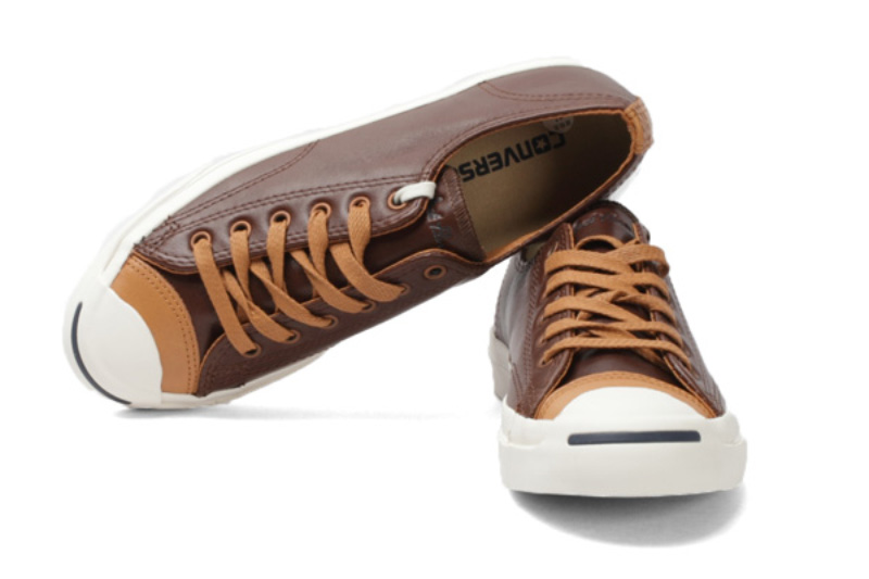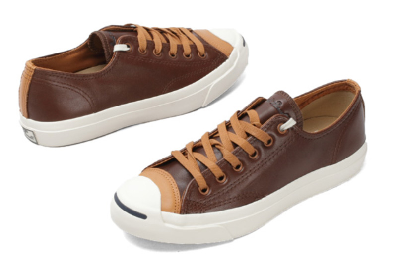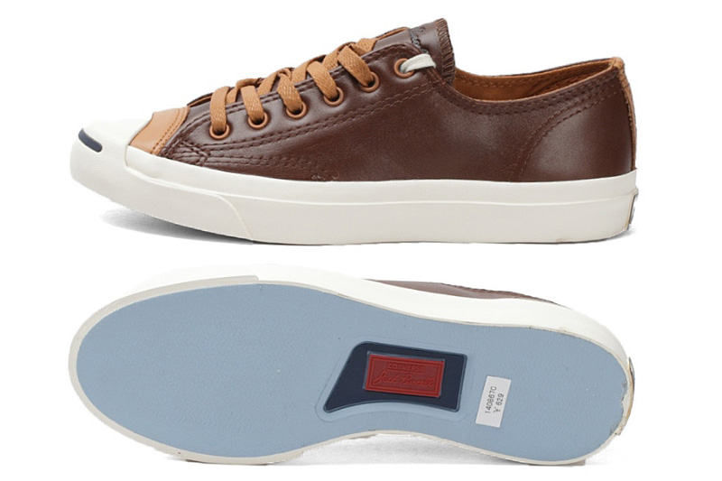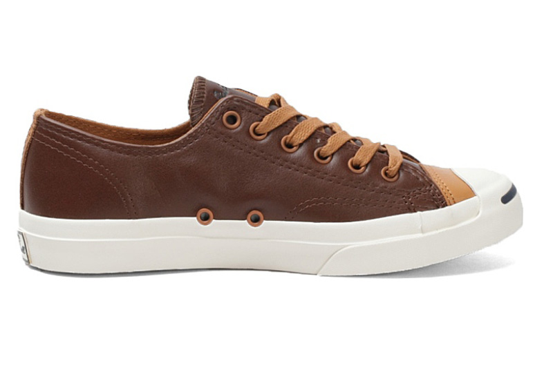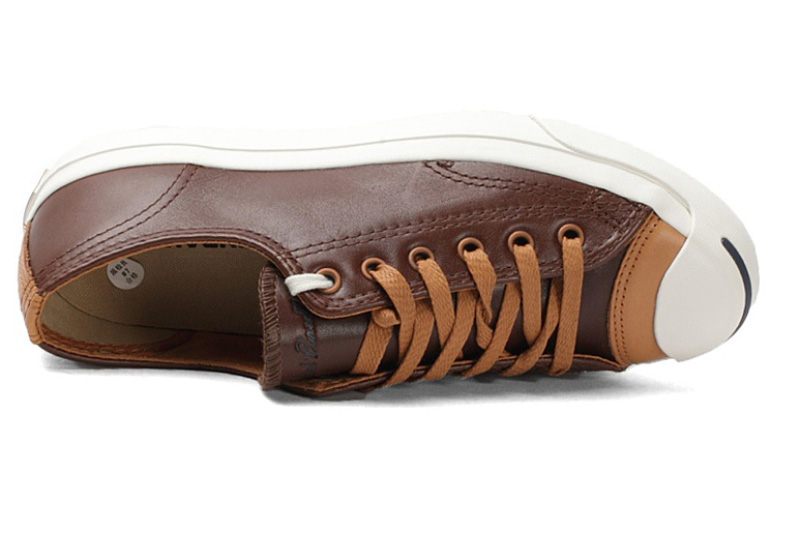 匡威Jack purcell深棕色/深黃色低幫綁帶牛皮中性鞋