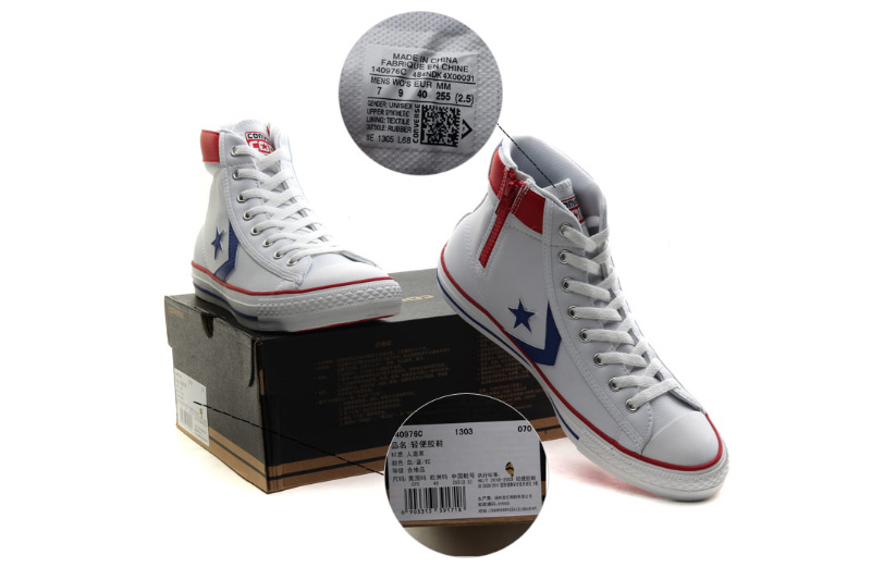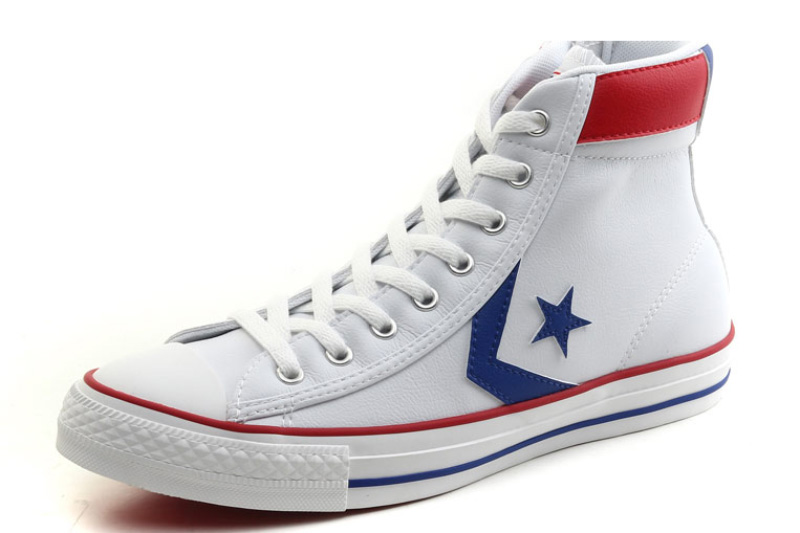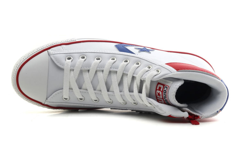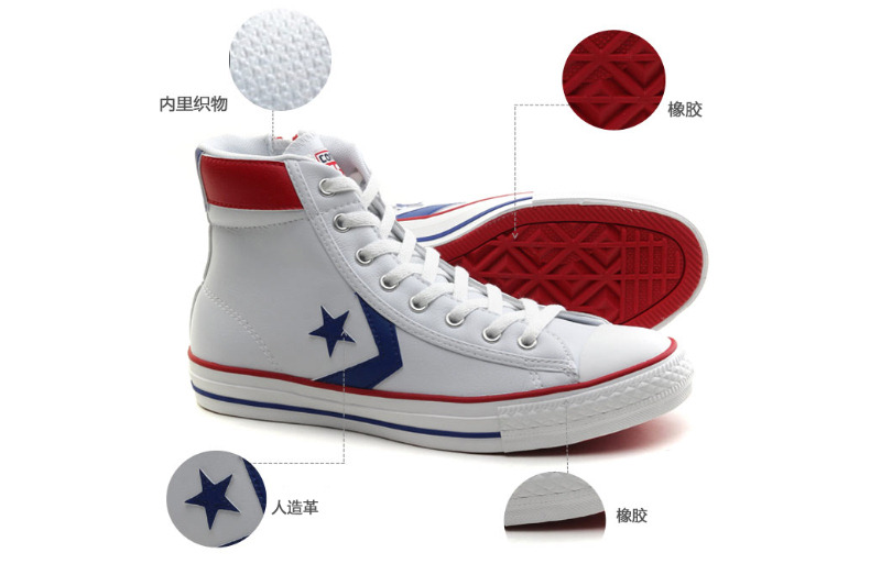 匡威輕便膠鞋白/藍/紅高幫綁帶PU(人造革)中性鞋
