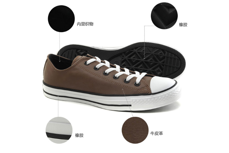 匡威CHUCK TAYLOR咖啡色低幫綁帶牛皮中性鞋
