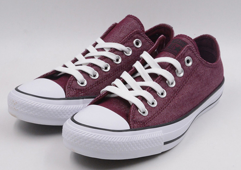 匡威Chuck Taylor深酒紅色低幫綁帶帆布中性鞋