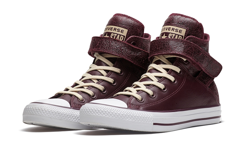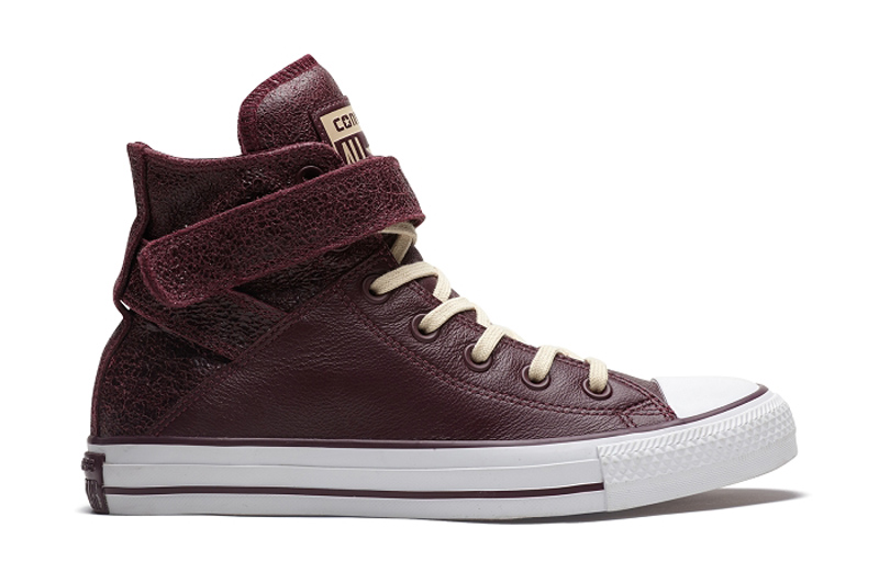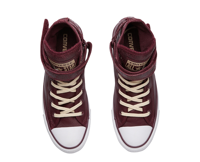 匡威Chuck Taylor深酒紅色高幫綁帶牛皮女鞋