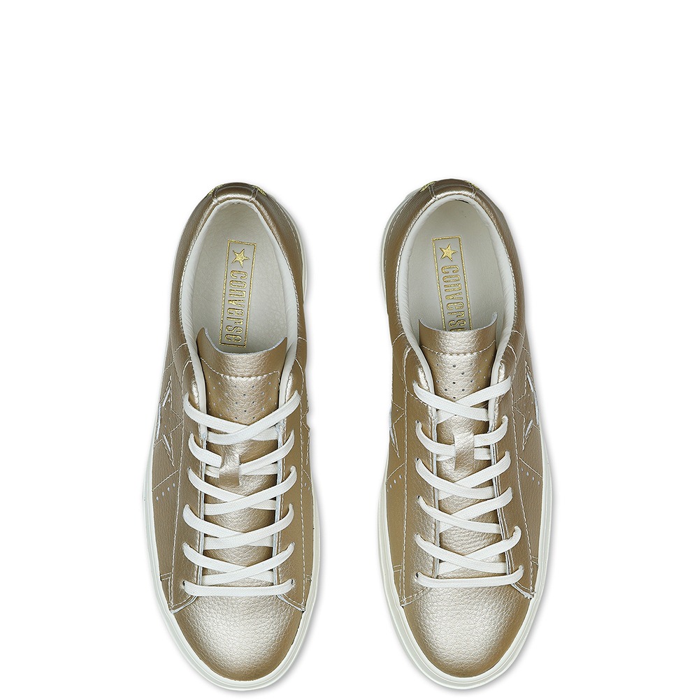 匡威CONVERSE CONS系列淺金色低幫綁帶牛皮女鞋