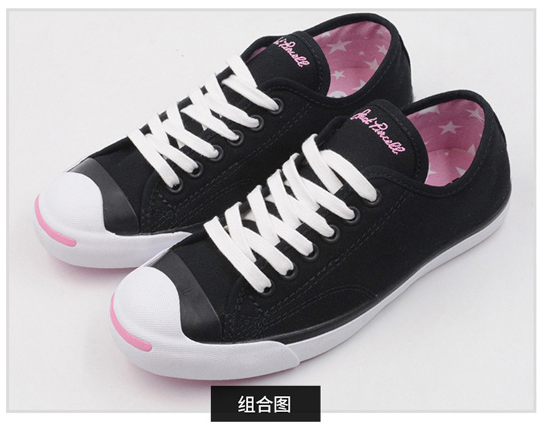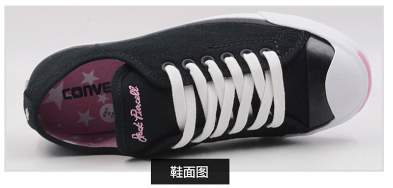 匡威JACK PURCELL系列黑色低幫綁帶帆布女鞋